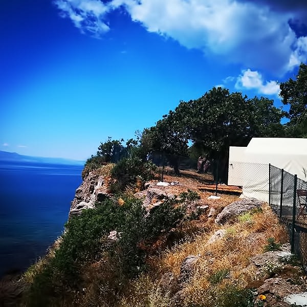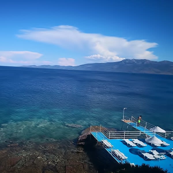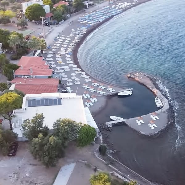 Kendisine ait iskelesi ve balık restaurantı ile müthiş deniz ve Midilli adası manzarasına her noktadan hakimdir.