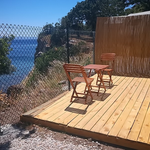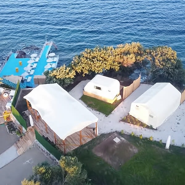 Glamping ve Karavan konseptindeki odalarımızın tümü kendisine özel bahçe oturma grupları olan verandalı, denize sıfır hakim tepede konaklama seçenekleri ile hizmet vermektedir.